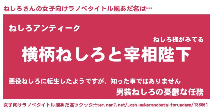 | 男性向けラノベタイトル風あだ名 | 『ねしろに滅ぼされるだけの簡単なお仕事です』 |