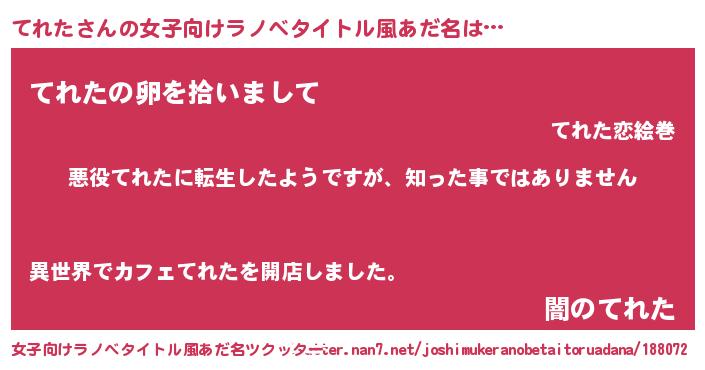 | 胡散臭い通販商品みたいなあだ名 | 『あなたにだけ特別に提供する世界で10本だけ現存している希少なブランデー…その名も「てれた」』 |
