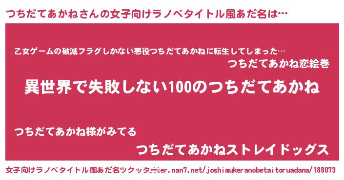 | 胡散臭い通販商品みたいなあだ名 | 『絶対に幸福をもたらす健康食品…その名も「つちだてあかね」』 |