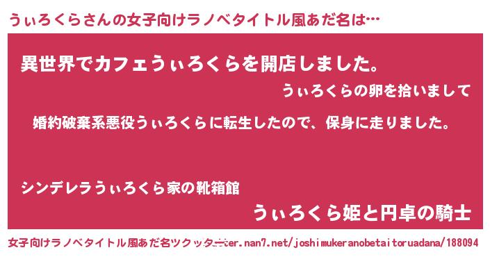 | 胡散臭い通販商品みたいなあだ名 | 『絶対に幸福をもたらす健康食品…その名も「うぃろくら」』 |