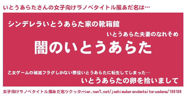| 男性向けラノベタイトル風あだ名 | 『Re:いとうあらたから始める異世界生活』 |