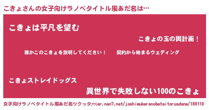 | 男性向けラノベタイトル風あだ名 | 『コキョアートオンライン』 |