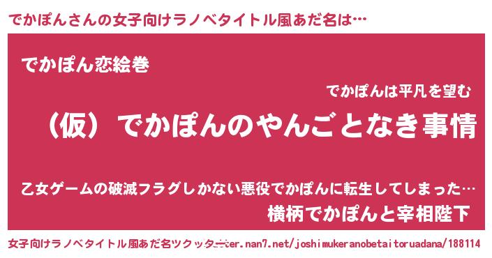 | 男性向けラノベタイトル風あだ名 | 『でかぽんの憂鬱』 |