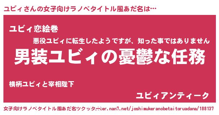 | 男性向けラノベタイトル風あだ名 | 『うちのユビィが世界を掌握している!』 |