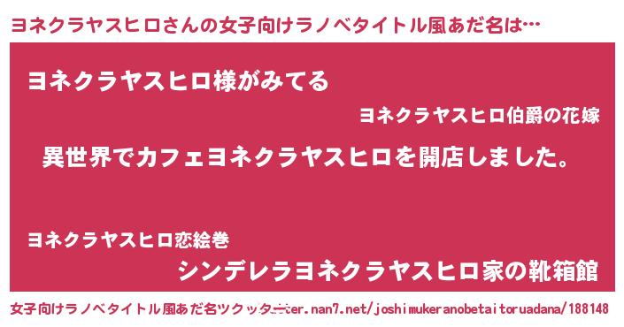 | ヘコむあだ名 | 『ヨネクラヤスヒロ(笑)』『ヨネを』 |
