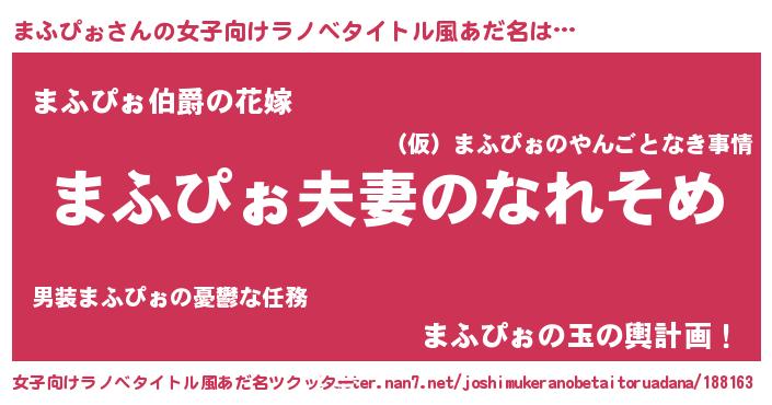 | 男性向けラノベタイトル風あだ名 | 『おまえをオタクにしてやるから、俺をまふぴぉにしてくれ! 』 |