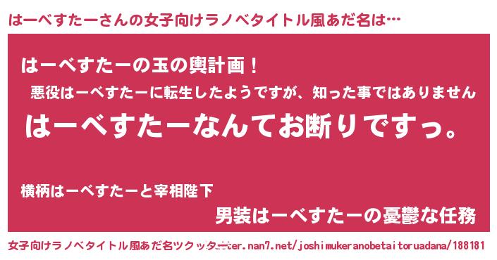 | 意味不明あだ名 | 『自称はーべすたー』 |