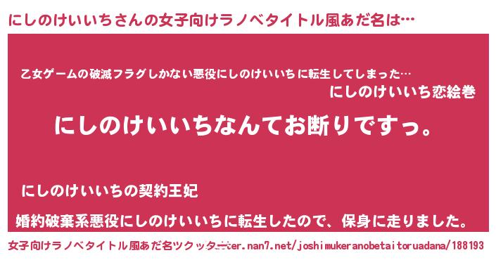 | 意味不明あだ名 | 『自称にしのけいいち』 |