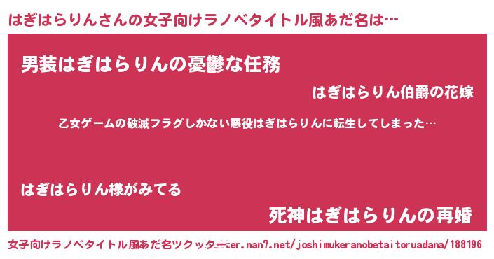 | 男性向けラノベタイトル風あだ名 | 『この素晴らしい世界にはぎはらりんを!』 |