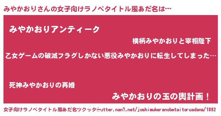 | 意味不明あだ名 | 『住所不定無職みやかおり(89歳)』 |