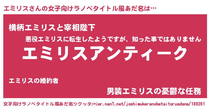 | 男性向けラノベタイトル風あだ名 | 『魔法科高校のエミリス』 |