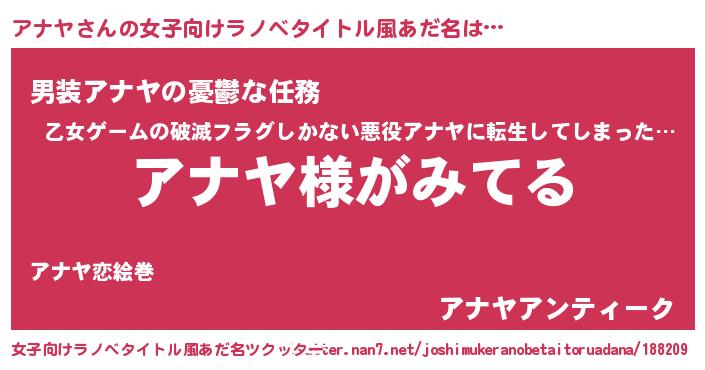 | ヒーロー風カッコイイあだ名 | 『炎刃騎士アナ』『サイバー戦士アナヤ』 |