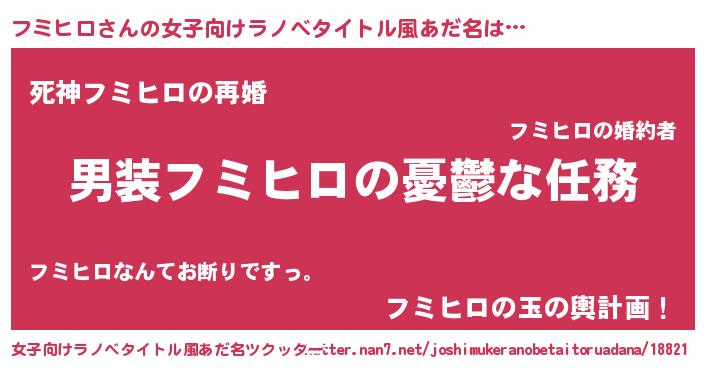 | 男性向けラノベタイトル風あだ名 | 『冴えないフミヒロの育てかた』 |