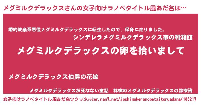 | 胡散臭い通販商品みたいなあだ名 | 『伝統あるペンダント…その名も「メグミルクデラックス」』 |