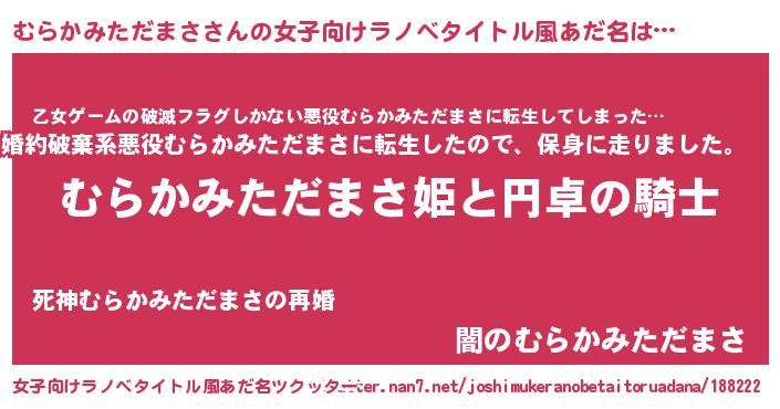 | 男性向けラノベタイトル風あだ名 | 『むらかみただまさの憂鬱』 |