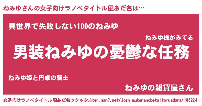 | ヒーロー風カッコイイあだ名 | 『ネオネミユ』『ウルトラねみゆマン』 |