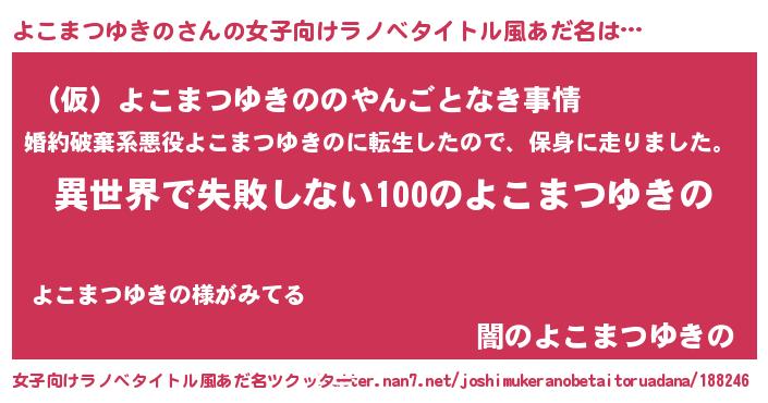 | 意味不明あだ名 | 『永久保存よこまつゆきの』 |