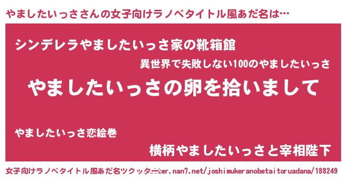 | 男性向けラノベタイトル風あだ名 | 『やましたいっさの嫁は女の子じゃないと思った?』 |