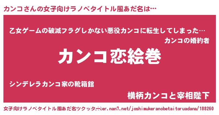 | 男性向けラノベタイトル風あだ名 | 『ノーゲーム・ノーカンコ』 |