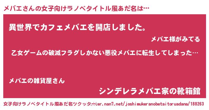 | ファンタジー風あだ名 | 『ヴァルメバーナ』『メバディッシュ』 |