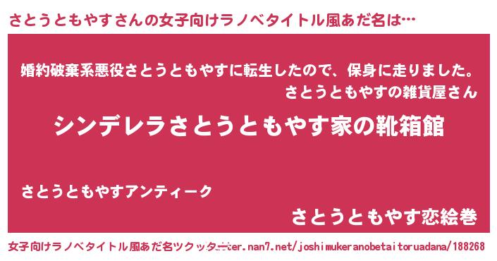 | 男性向けラノベタイトル風あだ名 | 『冴えないさとうともやすの育てかた』 |