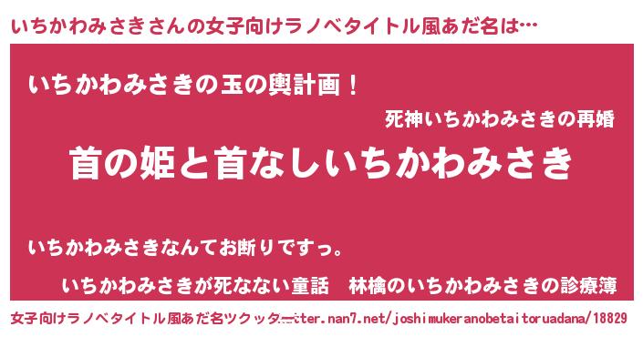 | 男性向けラノベタイトル風あだ名 | 『はたらくいちかわみさきさま!』 |