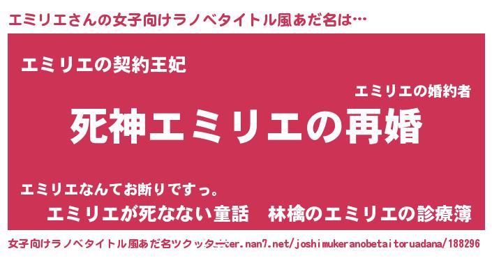 | 男性向けラノベタイトル風あだ名 | 『ノーゲーム・ノーエミリエ』 |