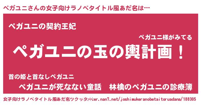 | ヘコむあだ名 | 『ペガユニ(笑)』『ペガっぺ』 |