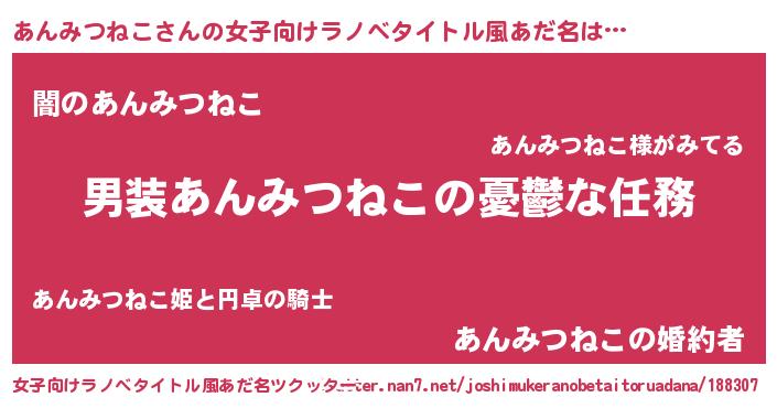 | 男性向けラノベタイトル風あだ名 | 『うちのあんみつねこが世界を掌握している!』 |