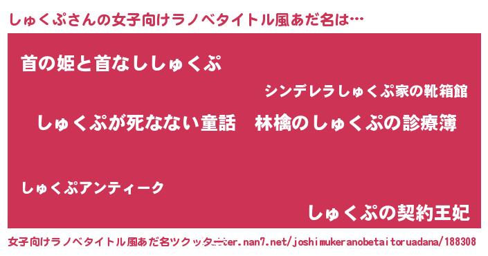 | ヘコむあだ名 | 『しゅくぷ(笑)』『豆乳』『しゅもー』 |