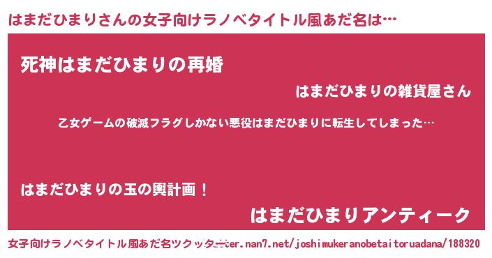 | 男性向けラノベタイトル風あだ名 | 『この素晴らしい世界にはまだひまりを!』 |