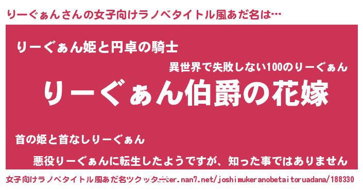 | 意味不明あだ名 | 『りーぐぁんフォーエバー』 |