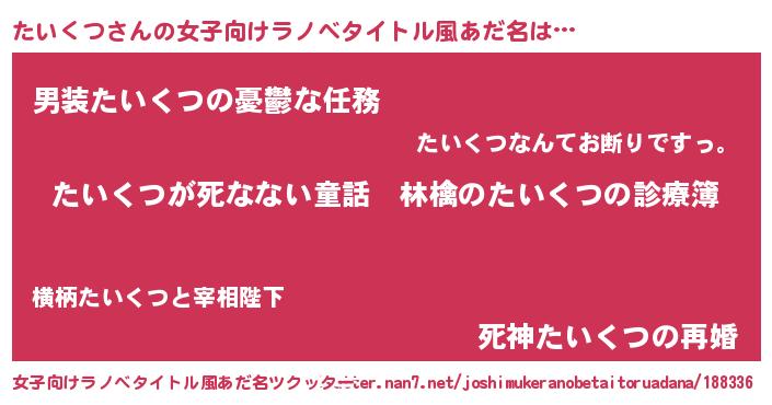 | ヒーロー風カッコイイあだ名 | 『仮面タイダー』『慈愛の使者たいくつ』 |