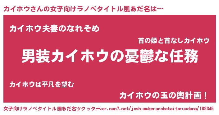 | ヒーロー風カッコイイあだ名 | 『愛の使者カイホウ』『暗黒騎士カイ』 |