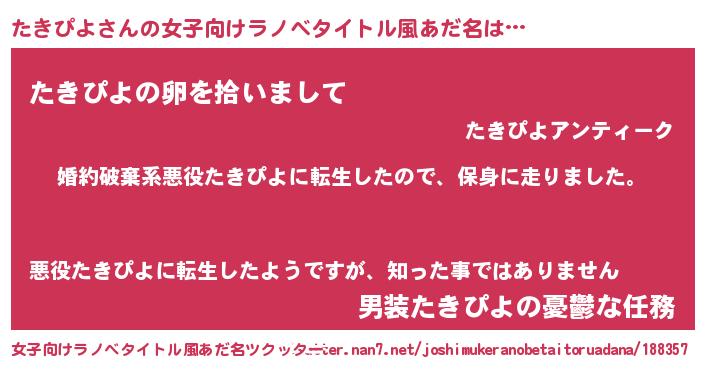 | 男性向けラノベタイトル風あだ名 | 『タキピヨスレイヤー』 |