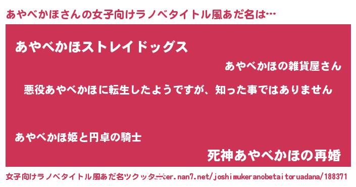 | 胡散臭い通販商品みたいなあだ名 | 『あなたにだけ特別に提供する世界で10本だけ現存している希少なブランデー…その名も「あやべかほ」』 |