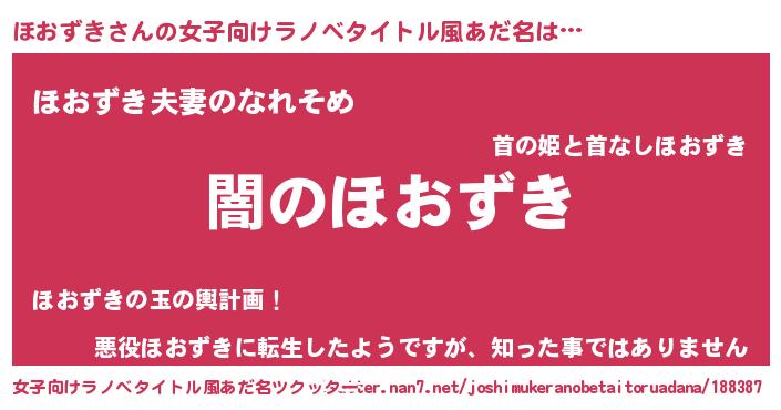 | 男性向けラノベタイトル風あだ名 | 『Re:ほおずきから始める異世界生活』 |