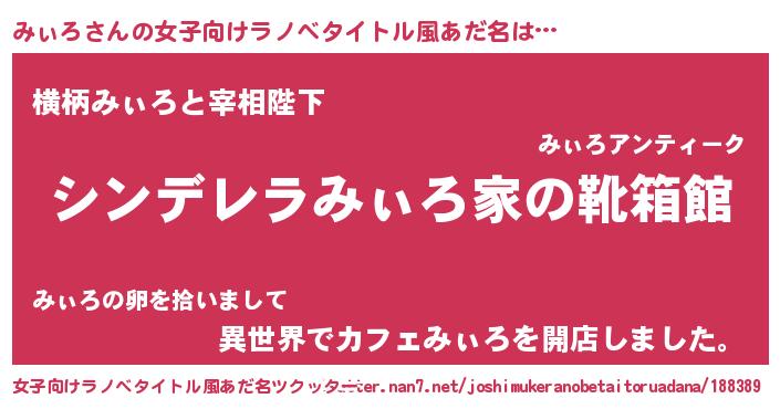 | 男性向けラノベタイトル風あだ名 | 『緋弾のミィロ』『魔法科高校のみぃろ』 |