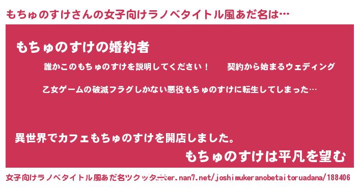 | 意味不明あだ名 | 『住所不定無職もちゅのすけ(41歳)』 |