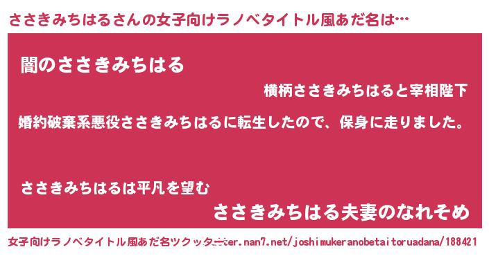 | 男性向けラノベタイトル風あだ名 | 『ササキミチハルスレイヤー』 |