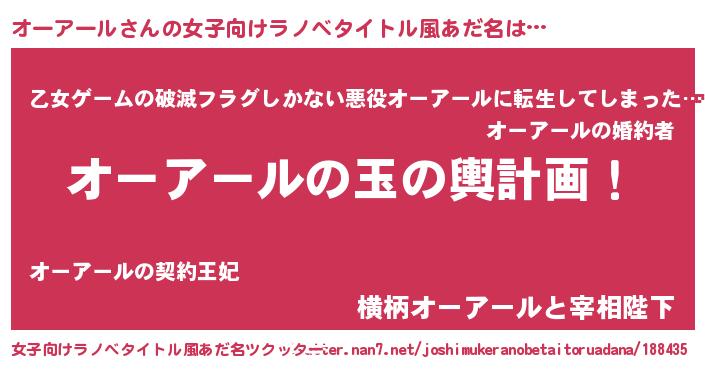| ヒーロー風カッコイイあだ名 | 『仮面オーダー』『ネオオーアール』 |