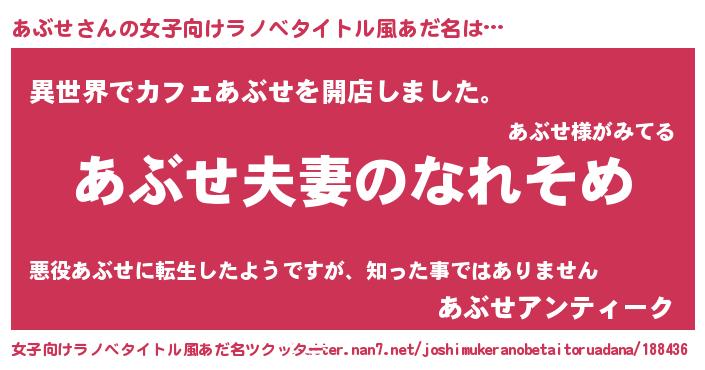 | ヒーロー風カッコイイあだ名 | 『正義の使者あぶせ』『ネオアブセ』 |