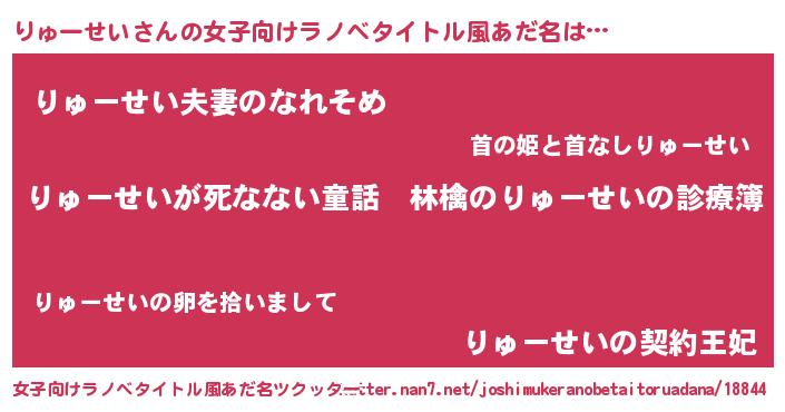 | ヘコむあだ名 | 『りゅーせい(遠い目)』『りゅ太郎』 |