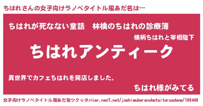 | ヒーロー風カッコイイあだ名 | 『サイバー戦士チハレ』『仮面チハダー』 |