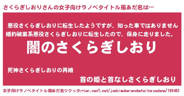 | 男性向けラノベタイトル風あだ名 | 『Re:さくらぎしおりから始める異世界生活』 |