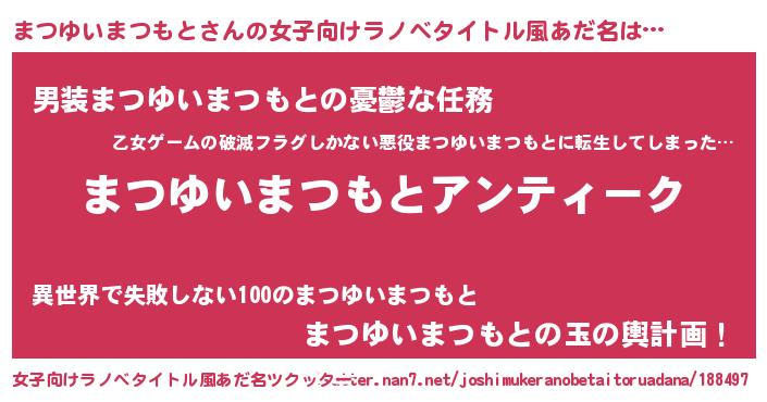 | 意味不明あだ名 | 『自称まつゆいまつもと』 |