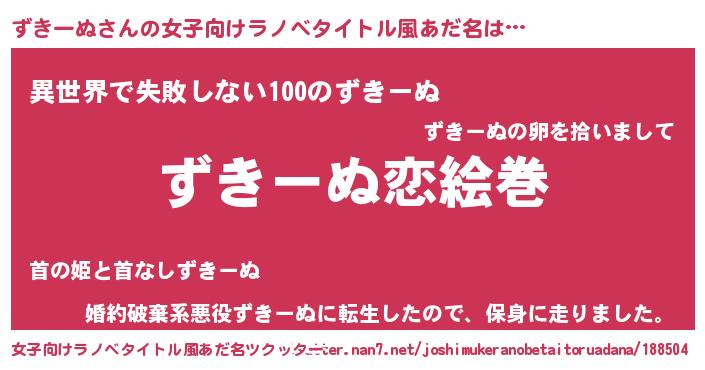 | ヒーロー風カッコイイあだ名 | 『愛の使者ずきーぬ』『ネオズキーヌ』 |