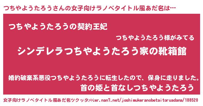 | 意味不明あだ名 | 『永久保存つちやようたろう』 |