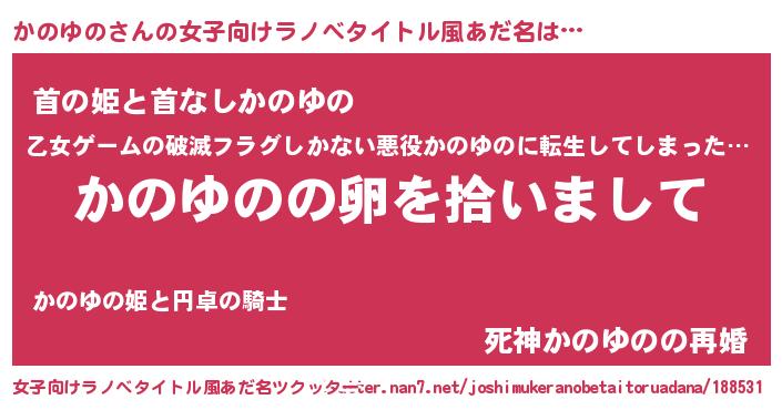 | 意味不明あだ名 | 『とにかく怪しいかのゆの』 |