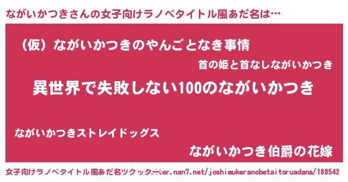 | 男性向けラノベタイトル風あだ名 | 『ながいかつきという概念が存在しない退屈な世界 』 |